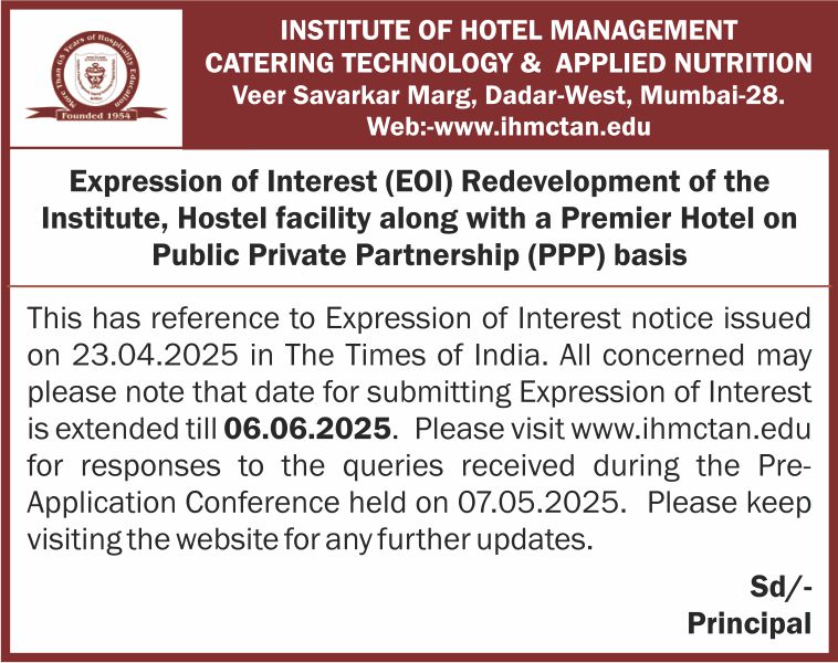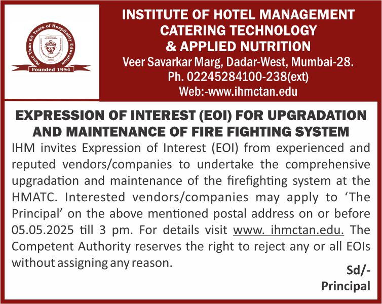 The above tender is available on E-Wizard for filling (Tender No: IHM/Tender/Drainagesystem/Mumbai/2024-25)